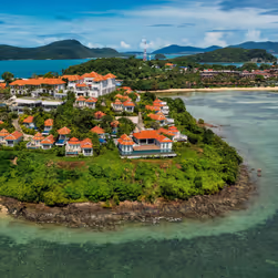 Cape Panwa im Südosten Phukets ist ein Geheimtipp für Reisende, die Luxus und Ruhe abseits des Massentourismus suchen. Die malerische Halbinsel besticht mit grünen Hügeln, unberührten Stränden und türkisblauem Meer mit versteckten Buchten. Phuket Town ist nur 12 km entfernt.